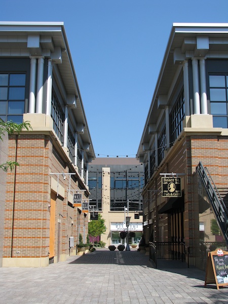 During this exchange I found myself thinking that this is a relatively small site so it doesn’t seem that having such close proximity between parking deck and restaurants is really necessary. After all, the site’s top priority is walkability. No one mentioned it, but another virtue to flipping these structures would be to more fully enclose the Quad on its south side with retail space. The Quad is designed to be the site’s beating heart. It seems a shame to have it bordered on one whole side by a parking deck. Full enclosure unencumbered by parking is an element shared by many of the great public plazas and squares of the world. Populating at least a few of these commercial spaces with tenants dedicated to various arts—visual and/or healing—would be a nice touch aimed at better connecting the site to its history. Flipping the structures would compromise the quality of the alley discussed above, but it would invite construction of another alley between the relocated retail space and Restaurant Row. The Row is already planned to have entrances on both its north and south sides, so squeezing some alley space in here would perhaps enhance the “urban grain” desired by some citizens. Restaurant Row was described a couple of times by Mary Nell Wolff as “New Urban” in spirit. However, it might benefit even more from a conscious effort to add a touch of “Old Europe.” If there’s an absolute need to stay with the parking deck then it might be fronted on its north side with spaces akin to those that comprise the arts-and-design focused Block 7 at Belmar, a line of studios that also front a parking deck.